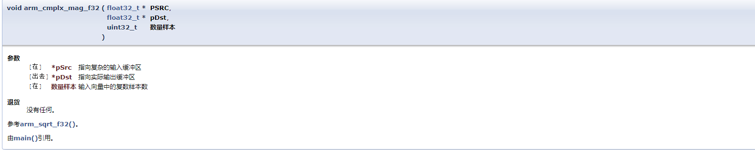 简单说明ARM_CMPLX_MAG_F32函数,需要输入三个参数。