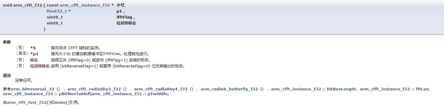 注:该函数只有一个输入数组,FFT运算完后会将运算后数据按设定顺序放入输入数组。